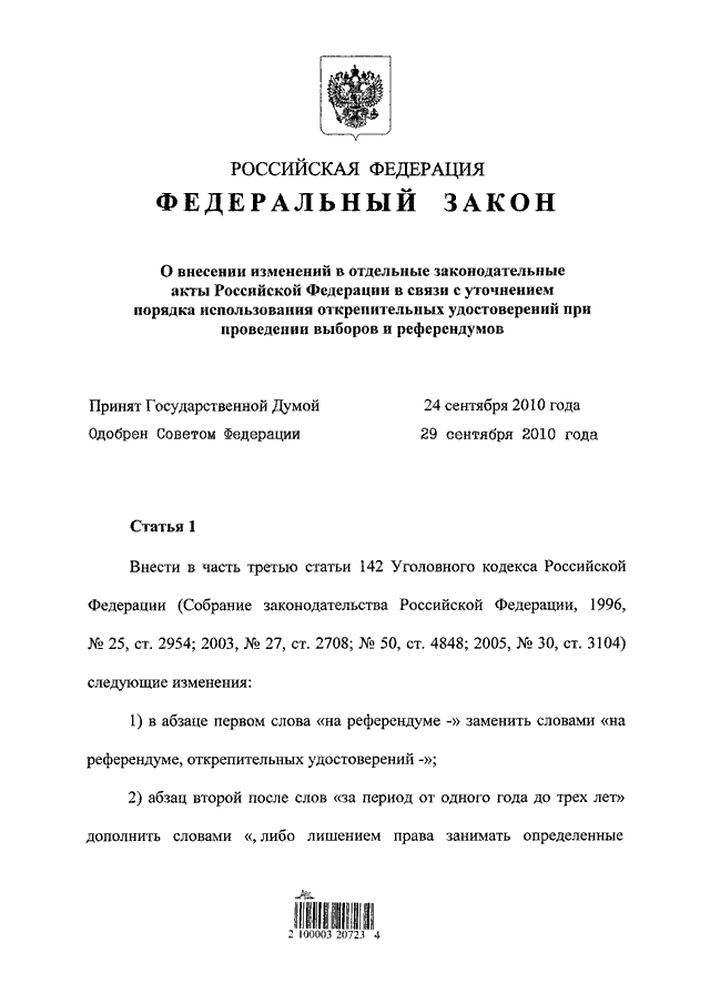 "О ВНЕСЕНИИ ИЗМЕНЕНИЙ В ОТДЕЛЬНЫЕ ЗАКОНОДАТЕЛЬНЫЕ АКТЫ РОССИЙСКОЙ ФЕДЕРАЦИИ В СВЯЗИ С УТОЧНЕНИЕМ ПОРЯДКА ИСПОЛЬЗОВАНИЯ ОТКРЕПИТЕЛЬНЫХ УДОСТОВЕРЕНИЙ ПРИ ПРОВЕДЕНИИ ВЫБОРОВ И РЕФЕРЕНДУМОВ"