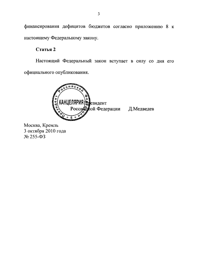 ФЕДЕРАЛЬНЫЙ ЗАКОН от 03.10.2010 N 255-ФЗ (Начало)