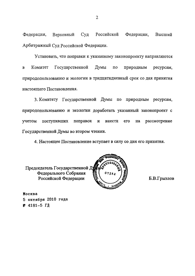 ПОСТАНОВЛЕНИЕ ГД ФС РФ от 05.10.2010 N 4181-5 ГД