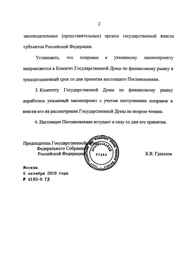 ПОСТАНОВЛЕНИЕ ГД ФС РФ от 05.10.2010 N 4183-5 ГД