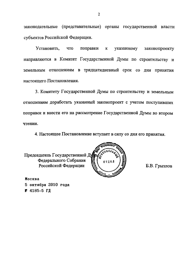 ПОСТАНОВЛЕНИЕ ГД ФС РФ от 05.10.2010 N 4185-5 ГД