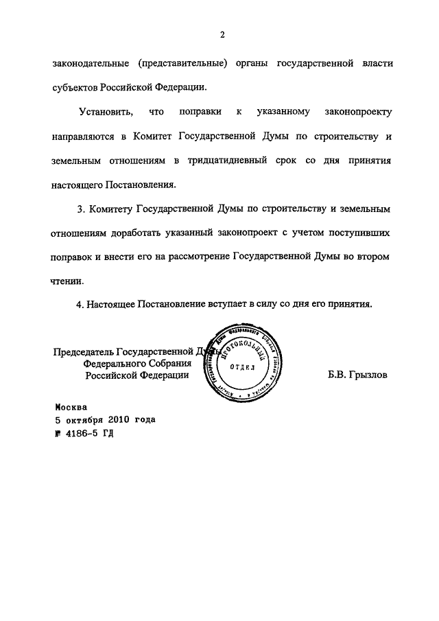 ПОСТАНОВЛЕНИЕ ГД ФС РФ от 05.10.2010 N 4186-5 ГД