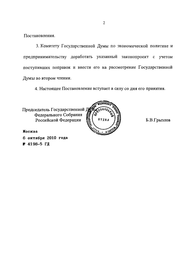 ПОСТАНОВЛЕНИЕ ГД ФС РФ от 06.10.2010 N 4198-5 ГД