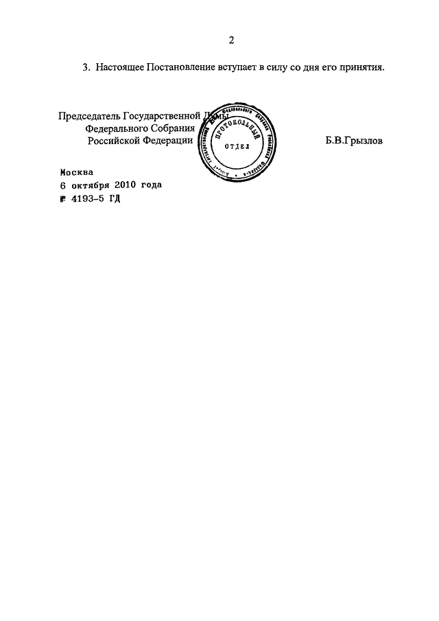 ПОСТАНОВЛЕНИЕ ГД ФС РФ от 06.10.2010 N 4193-5 ГД