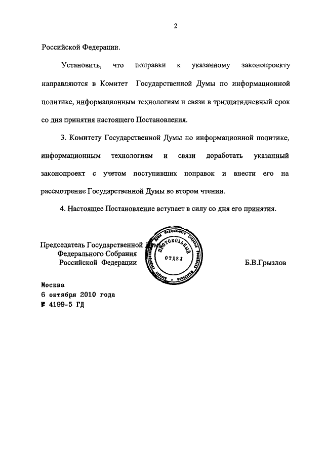 ПОСТАНОВЛЕНИЕ ГД ФС РФ от 06.10.2010 N 4199-5 ГД