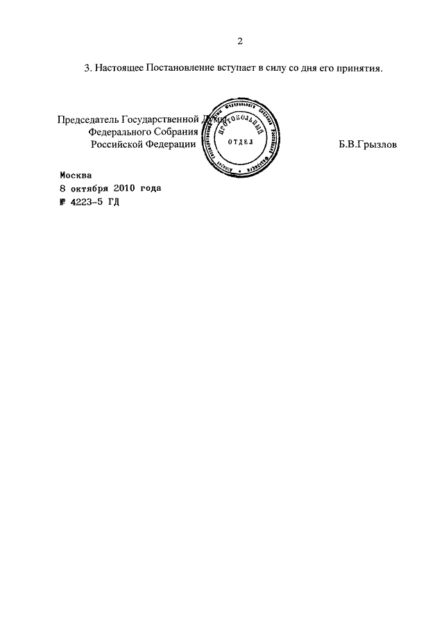 ПОСТАНОВЛЕНИЕ ГД ФС РФ от 08.10.2010 N 4223-5 ГД