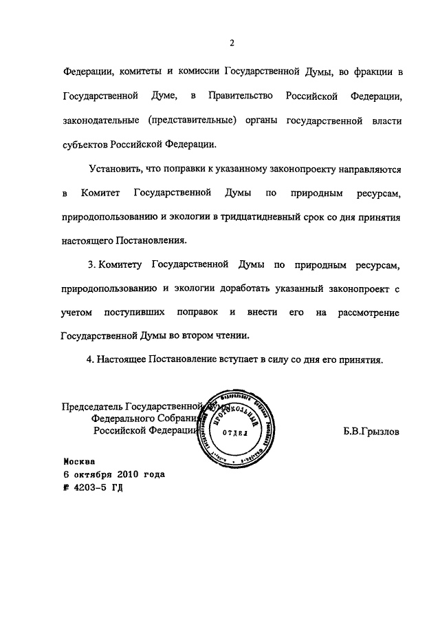 ПОСТАНОВЛЕНИЕ ГД ФС РФ от 06.10.2010 N 4203-5 ГД
