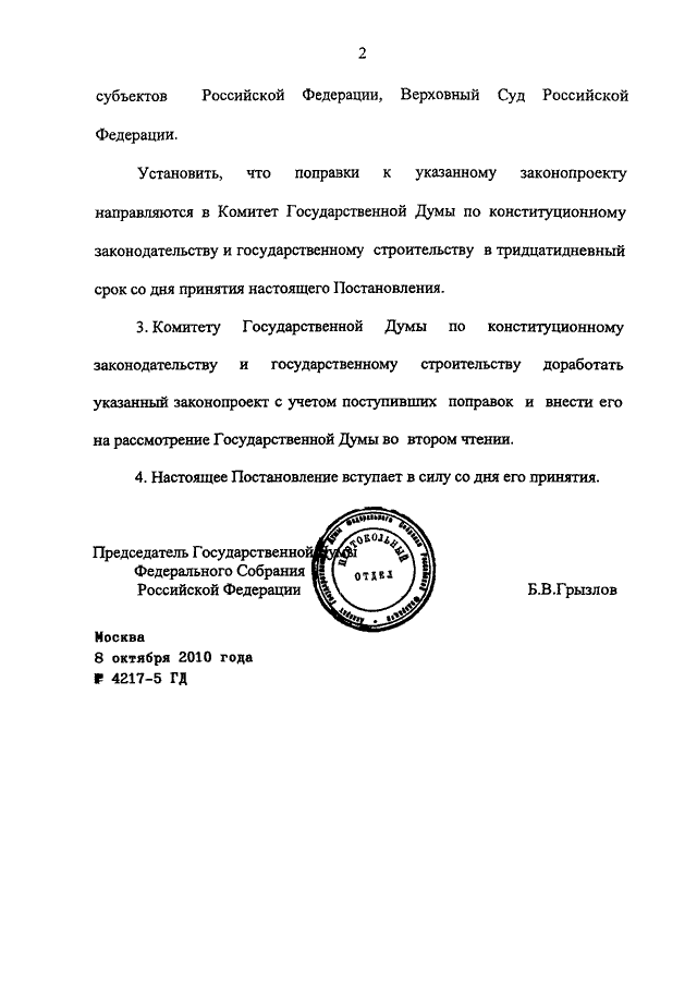 ПОСТАНОВЛЕНИЕ ГД ФС РФ от 08.10.2010 N 4217-5 ГД