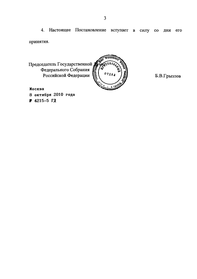 ПОСТАНОВЛЕНИЕ ГД ФС РФ от 08.10.2010 N 4215-5 ГД