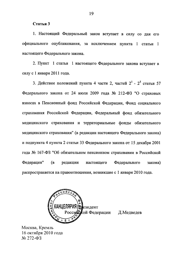 ФЕДЕРАЛЬНЫЙ ЗАКОН от 16.10.2010 N 272-ФЗ