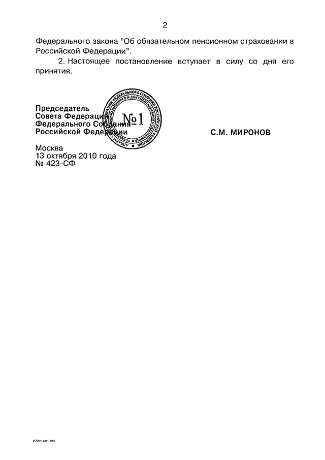 ПОСТАНОВЛЕНИЕ СФ ФС РФ от 13.10.2010 N 423-СФ