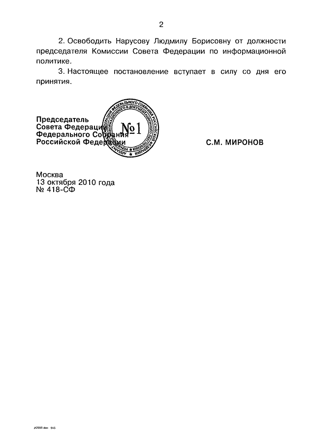 ПОСТАНОВЛЕНИЕ СФ ФС РФ от 13.10.2010 N 418-СФ