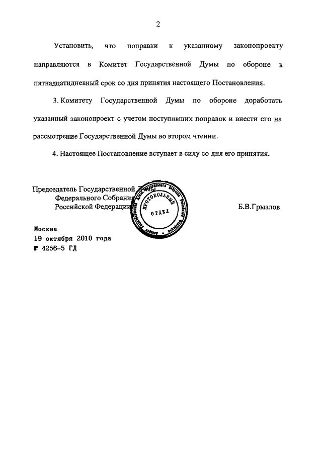 ПОСТАНОВЛЕНИЕ ГД ФС РФ от 19.10.2010 N 4256-5 ГД