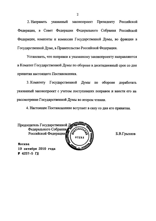 ПОСТАНОВЛЕНИЕ ГД ФС РФ от 19.10.2010 N 4257-5 ГД