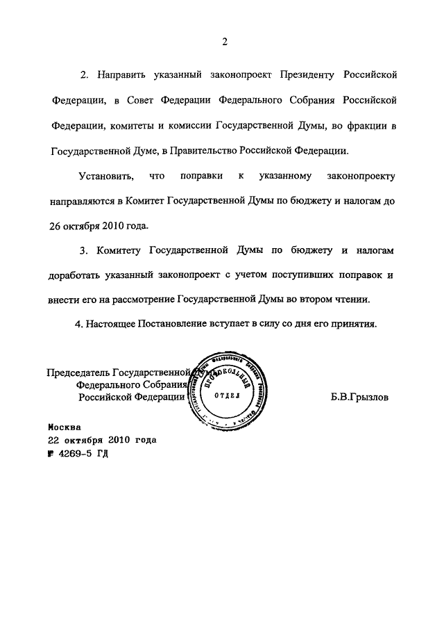 ПОСТАНОВЛЕНИЕ ГД ФС РФ от 22.10.2010 N 4269-5 ГД