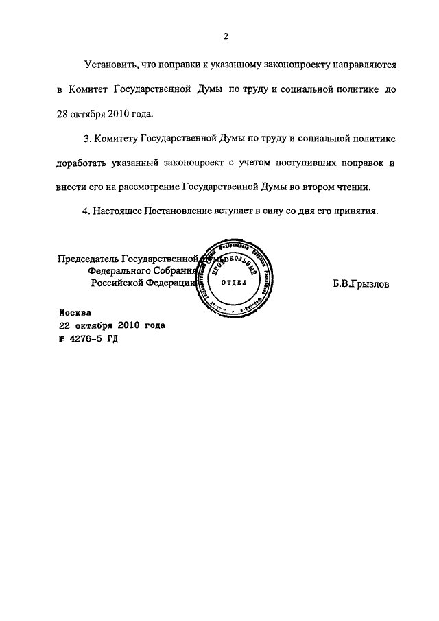 ПОСТАНОВЛЕНИЕ ГД ФС РФ от 22.10.2010 N 4276-5 ГД