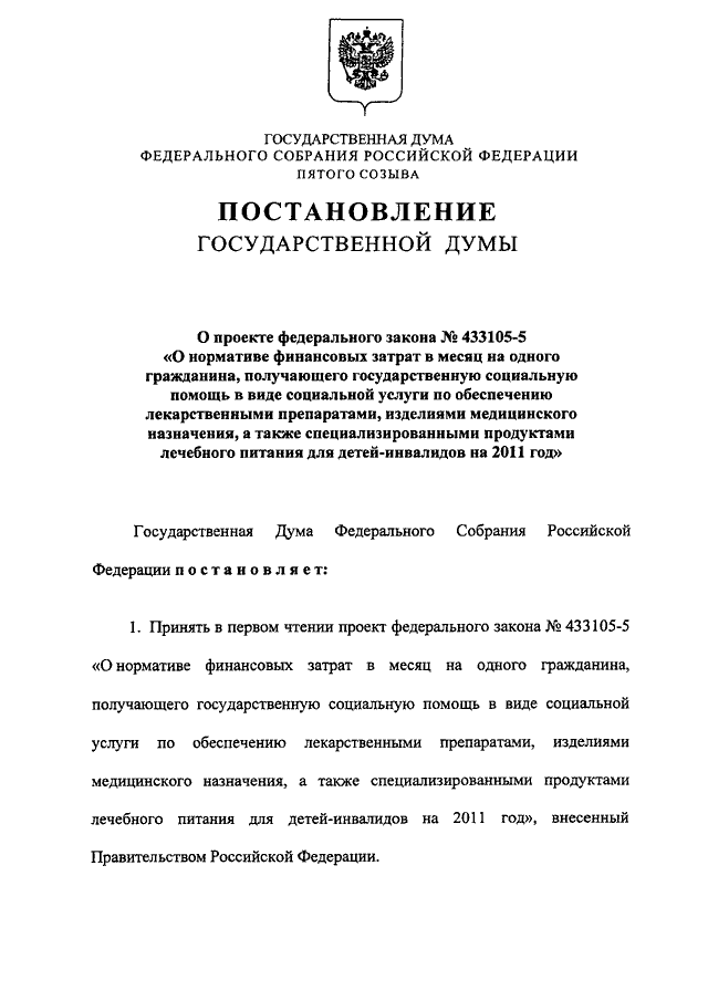 "О ПРОЕКТЕ ФЕДЕРАЛЬНОГО ЗАКОНА N 433105-5 "О НОРМАТИВЕ ФИНАНСОВЫХ