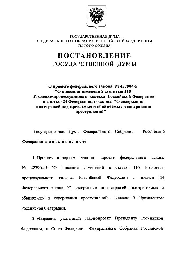 СТАТЬЮ 110 УГОЛОВНО - ПРОЦЕССУАЛЬНОГО КОДЕКСА РОССИЙСКОЙ ФЕДЕРАЦИИ