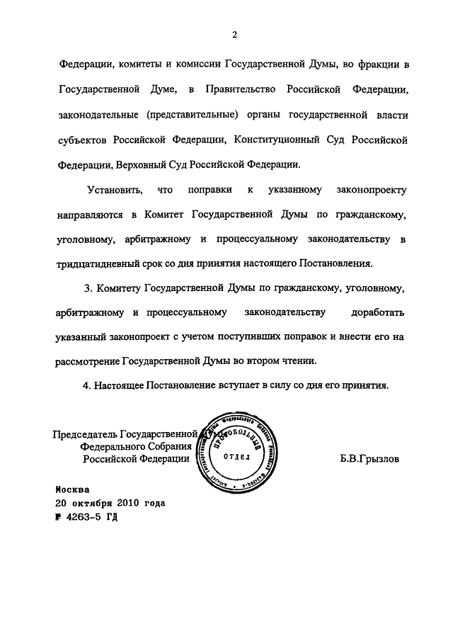 ПОСТАНОВЛЕНИЕ ГД ФС РФ от 20.10.2010 N 4263-5 ГД