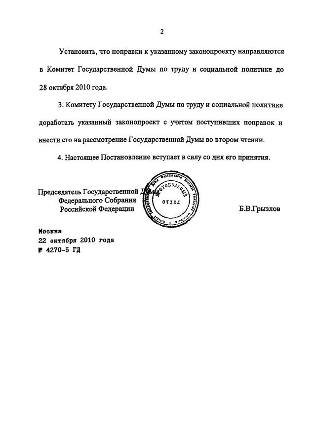 ПОСТАНОВЛЕНИЕ ГД ФС РФ от 22.10.2010 N 4270-5 ГД