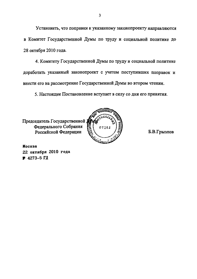 ПОСТАНОВЛЕНИЕ ГД ФС РФ от 22.10.2010 N 4273-5 ГД