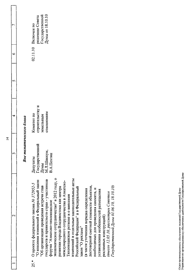 "О КАЛЕНДАРЕ РАССМОТРЕНИЯ ВОПРОСОВ ГОСУДАРСТВЕННОЙ ДУМОЙ СО 2 ПО 26 НОЯБРЯ 2010 ГОДА"