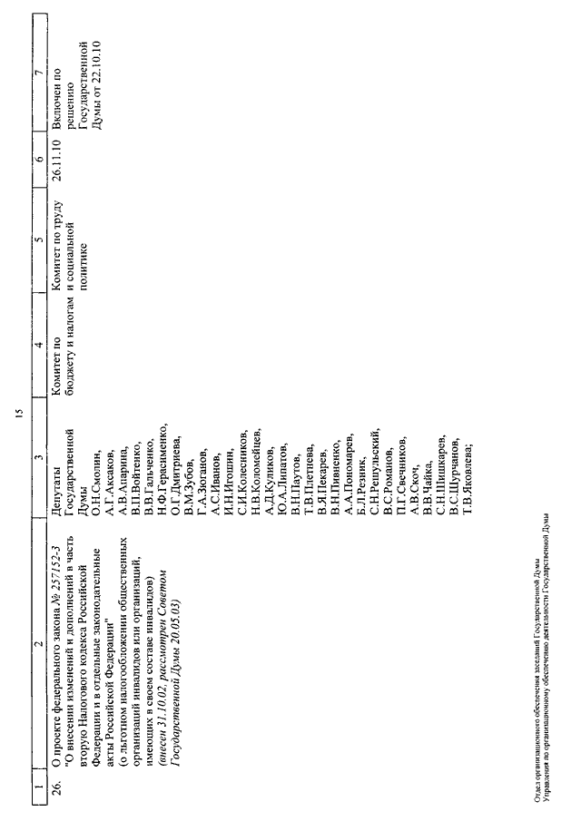"О КАЛЕНДАРЕ РАССМОТРЕНИЯ ВОПРОСОВ ГОСУДАРСТВЕННОЙ ДУМОЙ СО 2 ПО 26 НОЯБРЯ 2010 ГОДА"