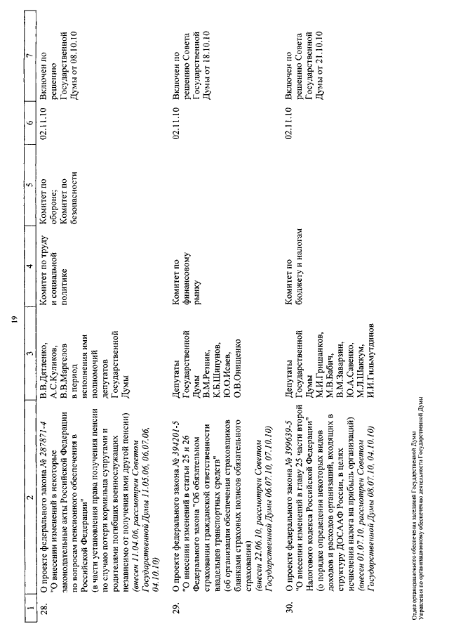 "О КАЛЕНДАРЕ РАССМОТРЕНИЯ ВОПРОСОВ ГОСУДАРСТВЕННОЙ ДУМОЙ СО 2 ПО 26 НОЯБРЯ 2010 ГОДА"