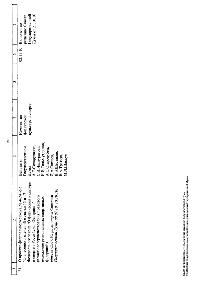"О КАЛЕНДАРЕ РАССМОТРЕНИЯ ВОПРОСОВ ГОСУДАРСТВЕННОЙ ДУМОЙ СО 2 ПО 26 НОЯБРЯ 2010 ГОДА"