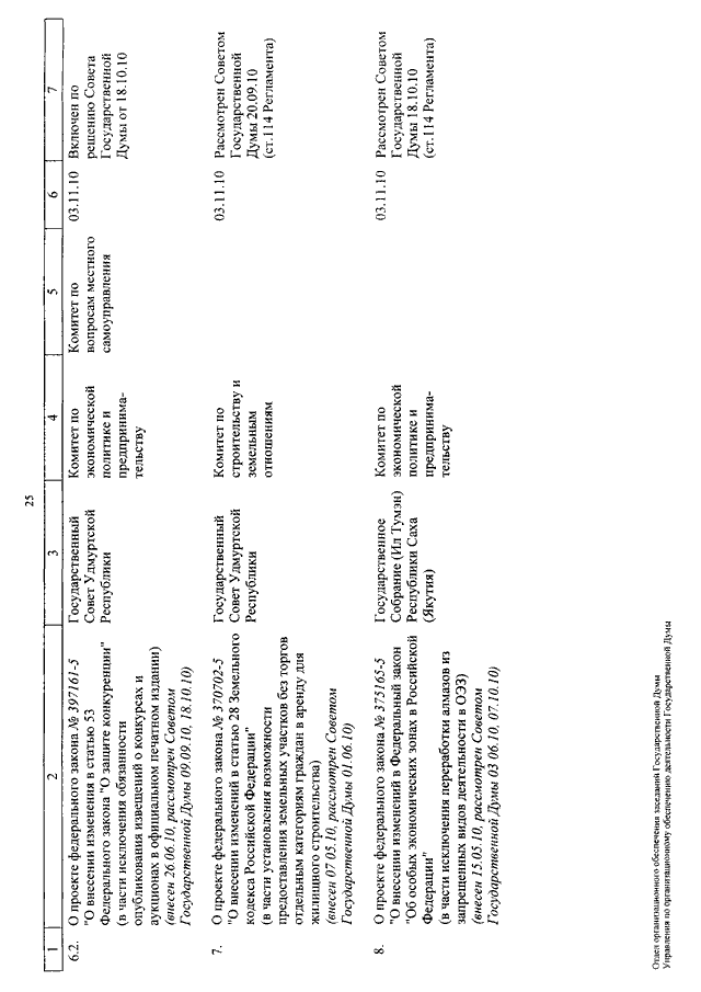 "О КАЛЕНДАРЕ РАССМОТРЕНИЯ ВОПРОСОВ ГОСУДАРСТВЕННОЙ ДУМОЙ СО 2 ПО 26 НОЯБРЯ 2010 ГОДА"