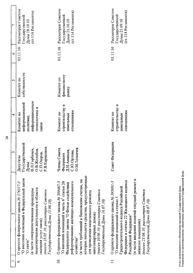 "О КАЛЕНДАРЕ РАССМОТРЕНИЯ ВОПРОСОВ ГОСУДАРСТВЕННОЙ ДУМОЙ СО 2 ПО 26 НОЯБРЯ 2010 ГОДА"