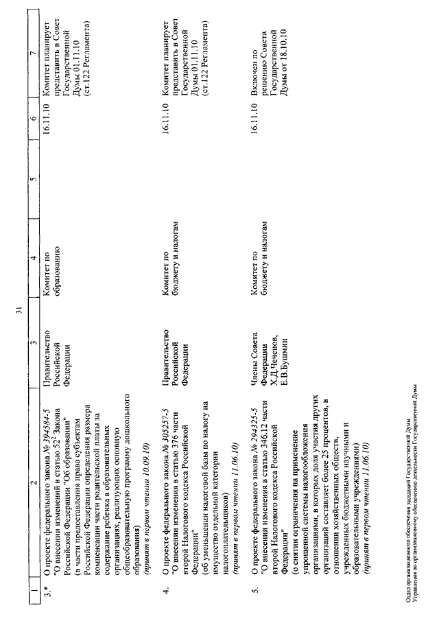 "О КАЛЕНДАРЕ РАССМОТРЕНИЯ ВОПРОСОВ ГОСУДАРСТВЕННОЙ ДУМОЙ СО 2 ПО 26 НОЯБРЯ 2010 ГОДА"