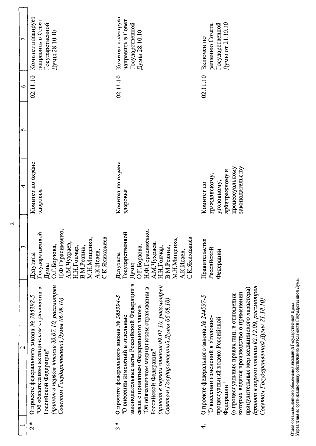 "О КАЛЕНДАРЕ РАССМОТРЕНИЯ ВОПРОСОВ ГОСУДАРСТВЕННОЙ ДУМОЙ СО 2 ПО 26 НОЯБРЯ 2010 ГОДА"