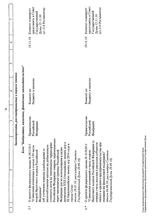 "О КАЛЕНДАРЕ РАССМОТРЕНИЯ ВОПРОСОВ ГОСУДАРСТВЕННОЙ ДУМОЙ СО 2 ПО 26 НОЯБРЯ 2010 ГОДА"