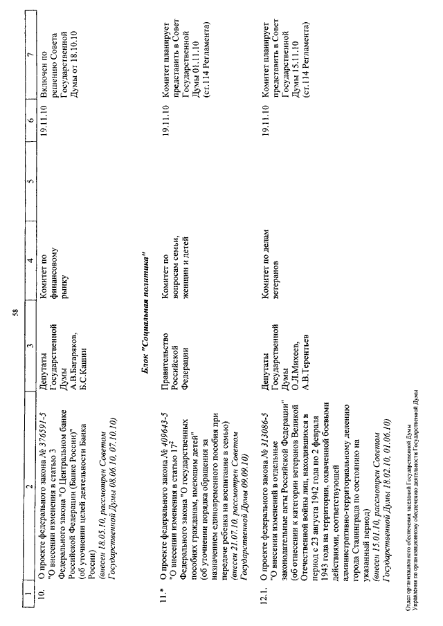 "О КАЛЕНДАРЕ РАССМОТРЕНИЯ ВОПРОСОВ ГОСУДАРСТВЕННОЙ ДУМОЙ СО 2 ПО 26 НОЯБРЯ 2010 ГОДА"