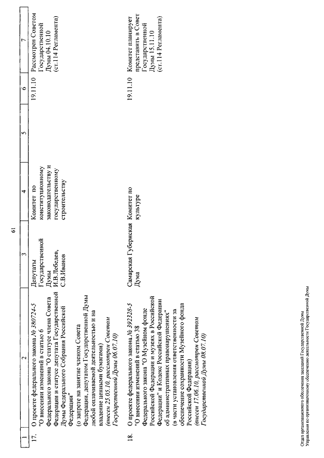 "О КАЛЕНДАРЕ РАССМОТРЕНИЯ ВОПРОСОВ ГОСУДАРСТВЕННОЙ ДУМОЙ СО 2 ПО 26 НОЯБРЯ 2010 ГОДА"