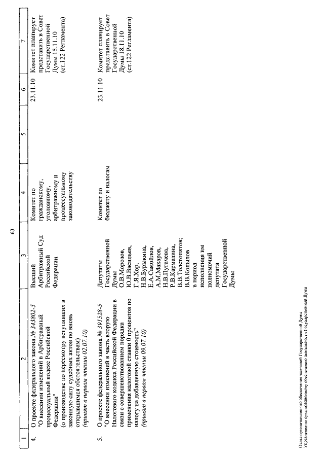 "О КАЛЕНДАРЕ РАССМОТРЕНИЯ ВОПРОСОВ ГОСУДАРСТВЕННОЙ ДУМОЙ СО 2 ПО 26 НОЯБРЯ 2010 ГОДА"