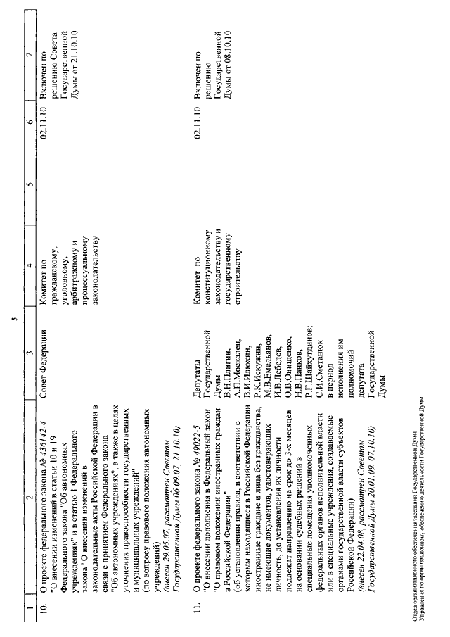 "О КАЛЕНДАРЕ РАССМОТРЕНИЯ ВОПРОСОВ ГОСУДАРСТВЕННОЙ ДУМОЙ СО 2 ПО 26 НОЯБРЯ 2010 ГОДА"