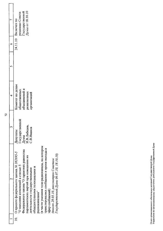 "О КАЛЕНДАРЕ РАССМОТРЕНИЯ ВОПРОСОВ ГОСУДАРСТВЕННОЙ ДУМОЙ СО 2 ПО 26 НОЯБРЯ 2010 ГОДА"