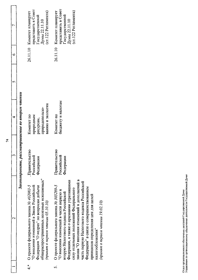 "О КАЛЕНДАРЕ РАССМОТРЕНИЯ ВОПРОСОВ ГОСУДАРСТВЕННОЙ ДУМОЙ СО 2 ПО 26 НОЯБРЯ 2010 ГОДА"