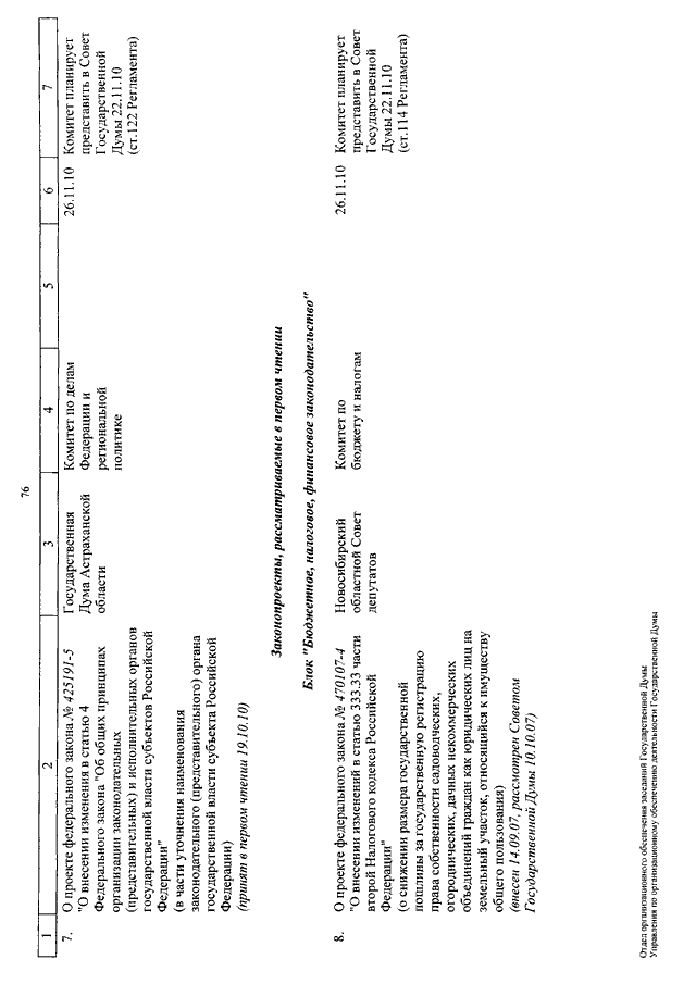 "О КАЛЕНДАРЕ РАССМОТРЕНИЯ ВОПРОСОВ ГОСУДАРСТВЕННОЙ ДУМОЙ СО 2 ПО 26 НОЯБРЯ 2010 ГОДА"