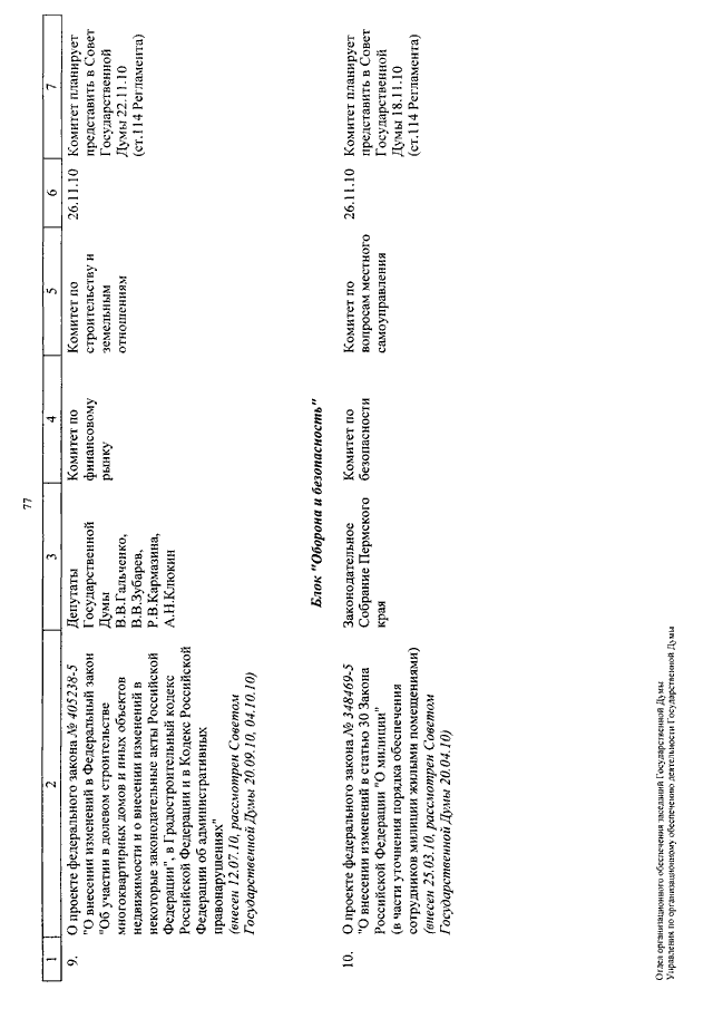 "О КАЛЕНДАРЕ РАССМОТРЕНИЯ ВОПРОСОВ ГОСУДАРСТВЕННОЙ ДУМОЙ СО 2 ПО 26 НОЯБРЯ 2010 ГОДА"