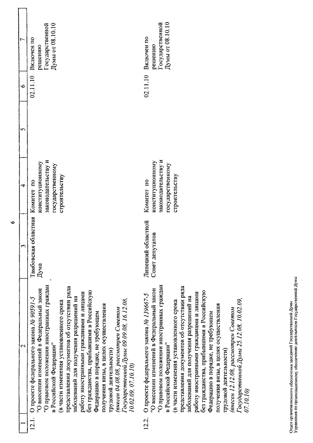 "О КАЛЕНДАРЕ РАССМОТРЕНИЯ ВОПРОСОВ ГОСУДАРСТВЕННОЙ ДУМОЙ СО 2 ПО 26 НОЯБРЯ 2010 ГОДА"