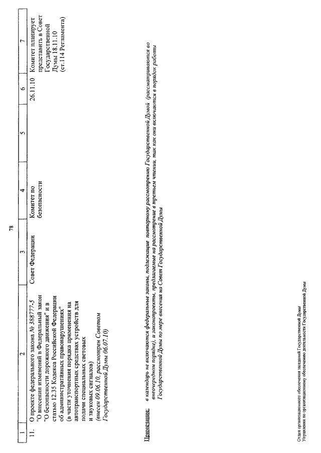 "О КАЛЕНДАРЕ РАССМОТРЕНИЯ ВОПРОСОВ ГОСУДАРСТВЕННОЙ ДУМОЙ СО 2 ПО 26 НОЯБРЯ 2010 ГОДА"