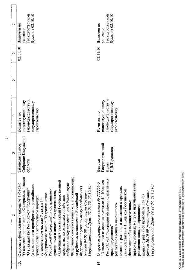 "О КАЛЕНДАРЕ РАССМОТРЕНИЯ ВОПРОСОВ ГОСУДАРСТВЕННОЙ ДУМОЙ СО 2 ПО 26 НОЯБРЯ 2010 ГОДА"