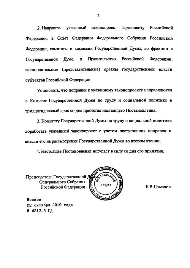 ПОСТАНОВЛЕНИЕ ГД ФС РФ от 22.10.2010 N 4312-5 ГД