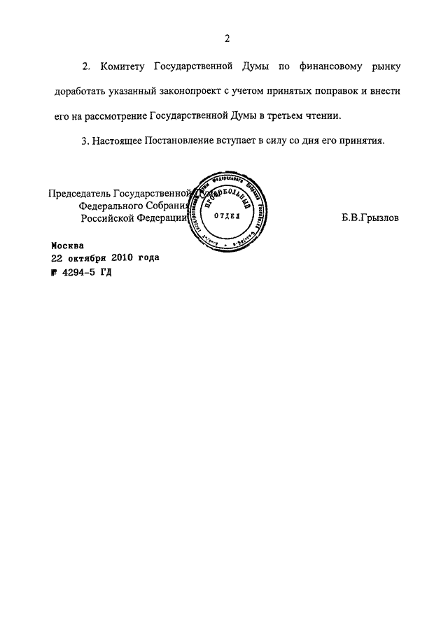 ПОСТАНОВЛЕНИЕ ГД ФС РФ от 22.10.2010 N 4294-5 ГД