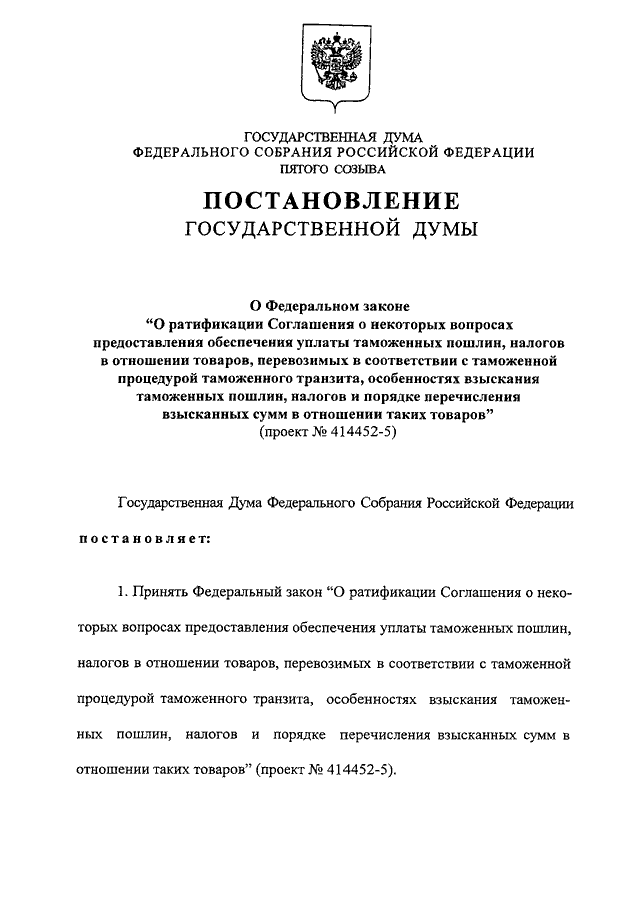 В ОТНОШЕНИИ ТАКИХ ТОВАРОВ" (ПРОЕКТ N 414452-5)"