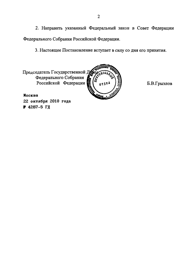 ПОСТАНОВЛЕНИЕ ГД ФС РФ от 22.10.2010 N 4287-5 ГД