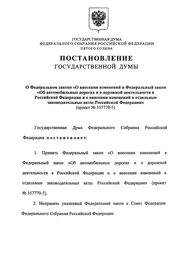 РОССИЙСКОЙ ФЕДЕРАЦИИ" (ПРОЕКТ N 357770-5)"